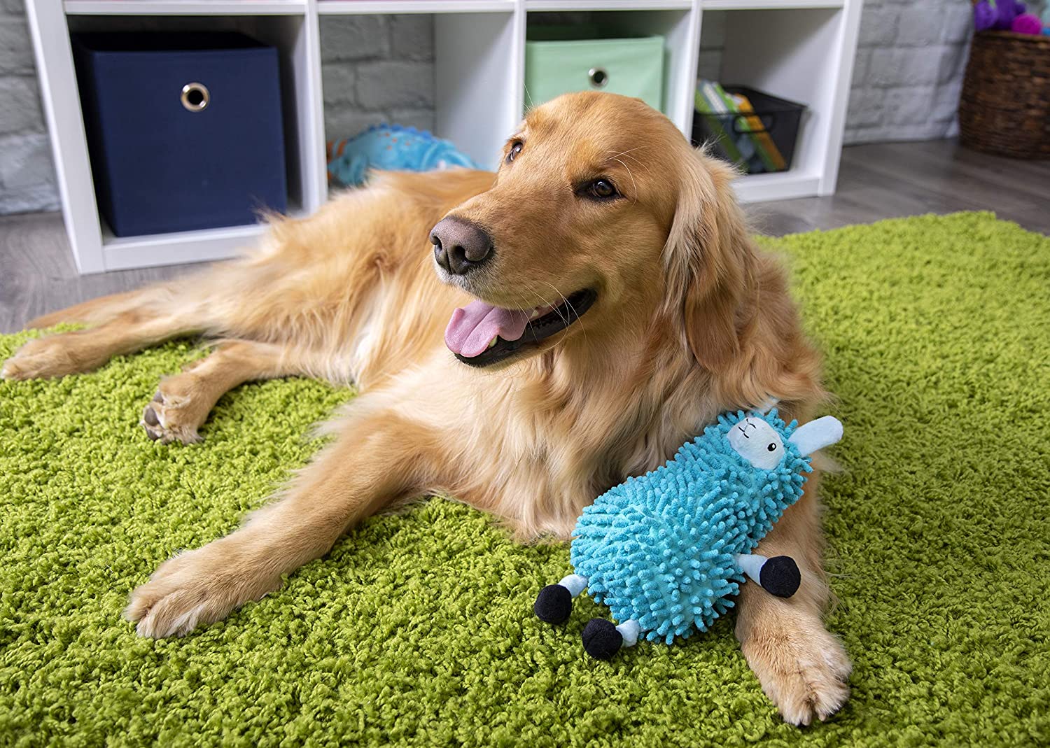 This Noodley Llama is constructed of a textured, nubby, mop-like noodle plush that dogs love, making it perfect for their next round of playtime! While this not a rough and tumble chew toy, it is designed to be strong and will last longer than standard plush toys. Plus, it comes with a high quality squeaker for additional fun!